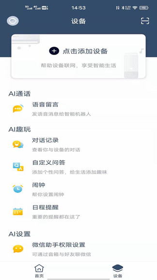 3. 設(shè)備管理:可以針對(duì)綁定的智能機(jī)器人設(shè)備進(jìn)行管理,并進(jìn)行相關(guān)功能的個(gè)性化設(shè)置。