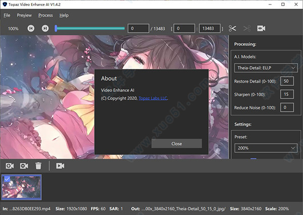 topaz video enhance ai,專業(yè)的視頻圖片放大處理軟件,軟件支持放大至8k高清分辨率,軟件追求動(dòng)作與細(xì)節(jié)的彌合性,放大后的視頻效果高度保真,可靠性強(qiáng),您可以隨心的對(duì)您的低質(zhì)量素材進(jìn)行高質(zhì)量的渲染,有需要的用戶可以下載使用!