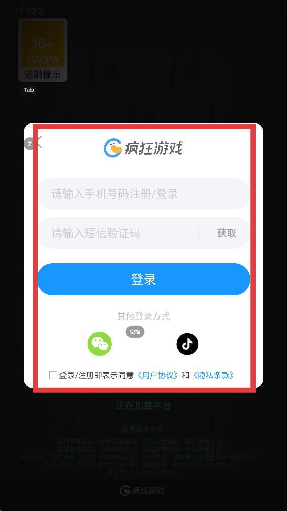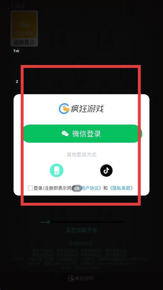 1、打開咸魚之王游戲,進(jìn)入登錄界面,選擇需要注冊的方式并點(diǎn)擊。