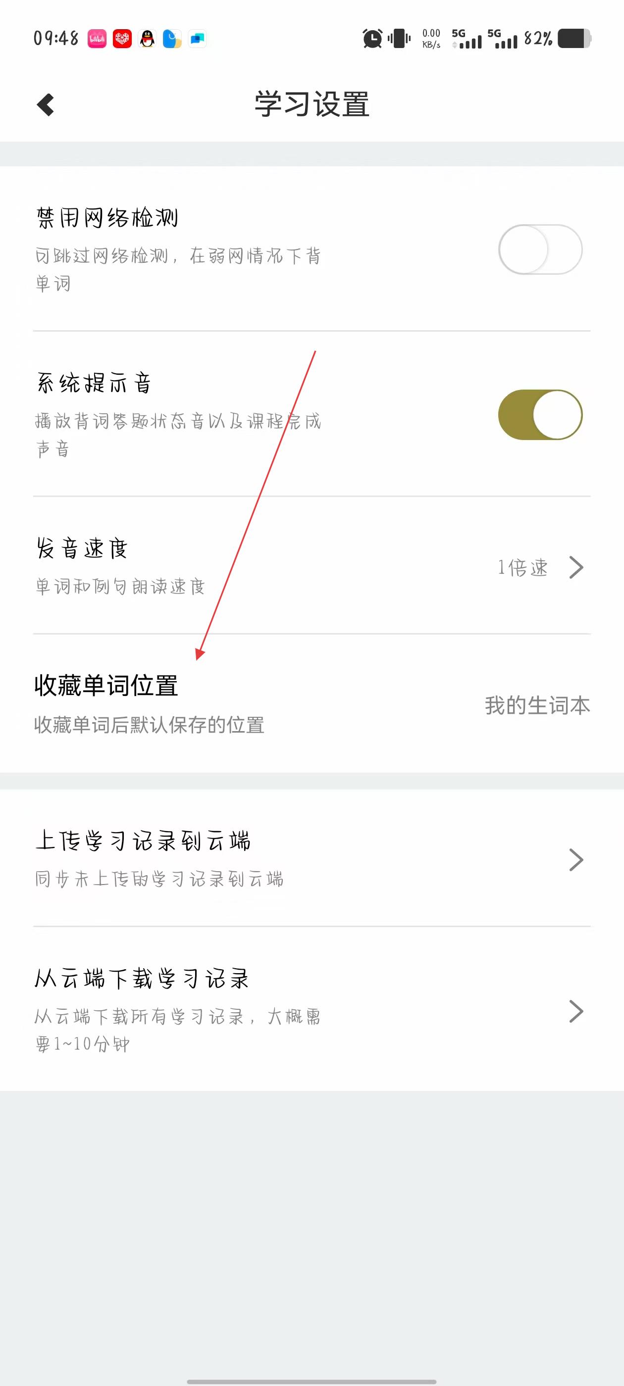 3、點擊收藏單詞位置,彈出設(shè)置單詞收藏位置的窗口。