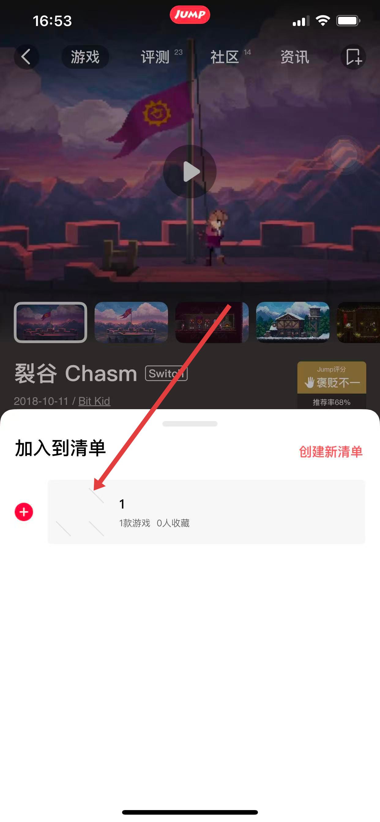 3、彈出加入到清單的界面,可以選擇已有的清單,游戲就會被添加到對應(yīng)的清單中。
