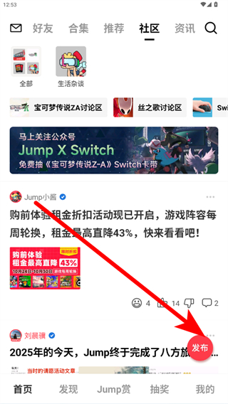 1、打開Jump應(yīng)用,點擊右下角的發(fā)布按鈕。