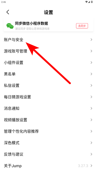 3、在設(shè)置頁面中找到賬號與安全選項并點擊,進入管理賬號安全相關(guān)功能的賬號管理頁面。