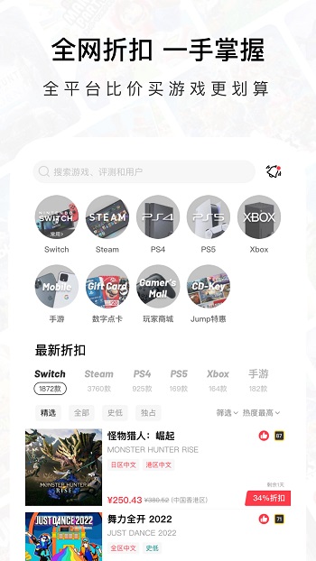 Jump是全球千萬玩家好評推薦的主機和PC游戲比價神器,目前已支持Switch&Steam平臺,PS5/PS4/xbox/Epic等平臺即將上線。搶先下載體驗,3A大作半價入手,史低游戲天天有,一年省出一部iPhone12!