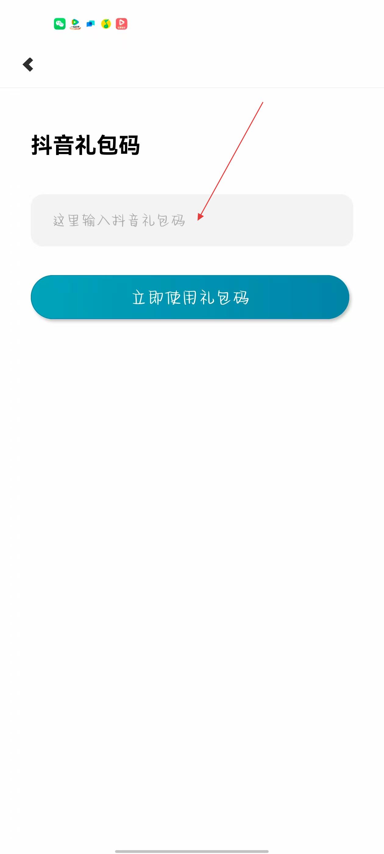 4、在抖音禮包碼輸入頁(yè)面的輸入框中,輸入抖音邀請(qǐng)碼,然后點(diǎn)擊立即使用禮包碼按鈕即可。