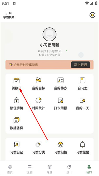 2、在我的頁面,找到并點(diǎn)擊倒數(shù)日?qǐng)D標(biāo)。