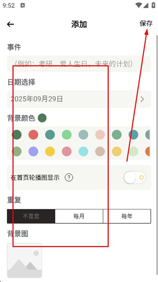 4、填寫信息,點(diǎn)擊右上角保存,即可添加倒數(shù)日。