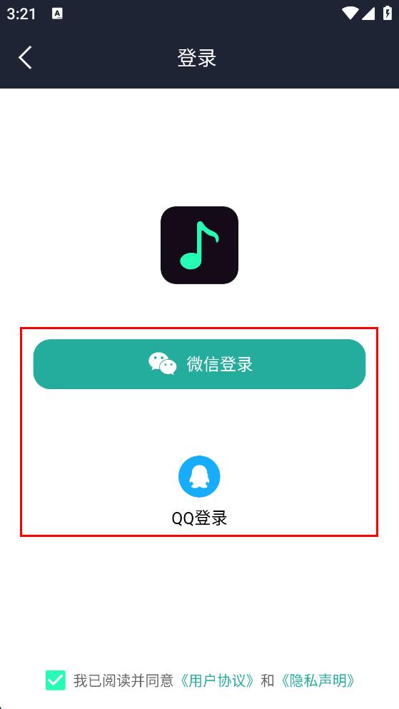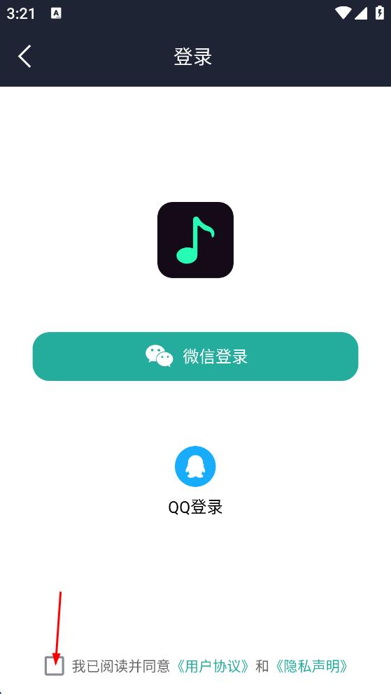 3、進(jìn)入登錄頁(yè)面,勾選我已閱讀并同意用戶協(xié)議和隱私聲明。