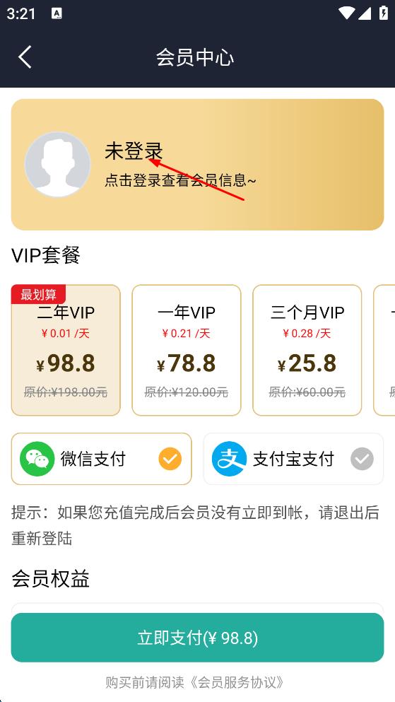 2、進(jìn)入會(huì)員中心頁(yè)面,點(diǎn)擊“未登錄”區(qū)域。