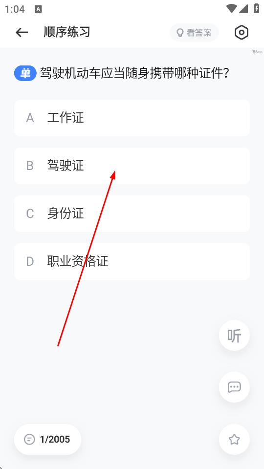 3、進(jìn)入題目練習(xí)界面,閱讀題目內(nèi)容,從下方選項中選擇認(rèn)為正確的答案。