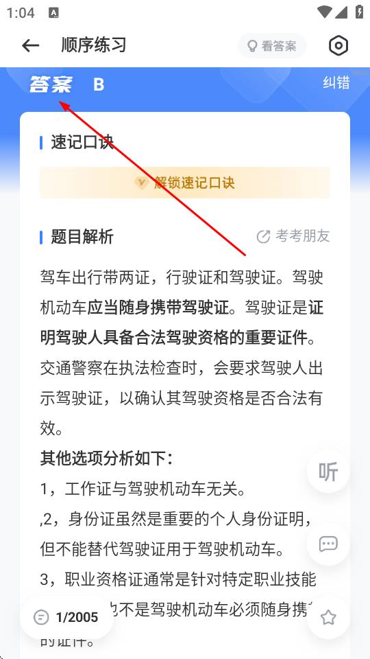 4、答題完成后,可以查看正確答案以及題目解析,了解答題的依據(jù)和相關(guān)知識點。