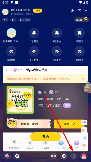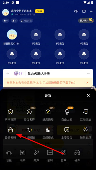 2、進(jìn)入房間后,點(diǎn)擊屏幕下方的菜單設(shè)置按鈕,打開設(shè)置菜單。