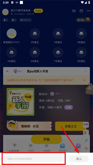 4、在彈出的輸入框中,輸入四位房間密碼,然后點(diǎn)擊確認(rèn),即可成功設(shè)置房間密碼。