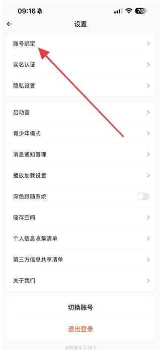 3、在設(shè)置頁(yè)面中找到賬號(hào)綁定選項(xiàng)并點(diǎn)擊,進(jìn)入賬號(hào)綁定相關(guān)功能頁(yè)面。