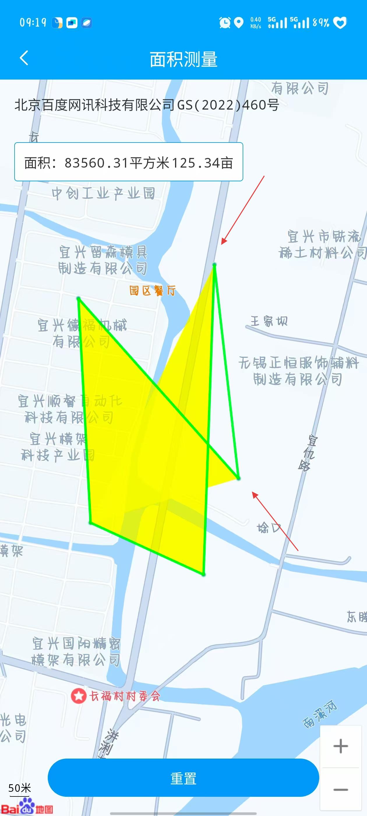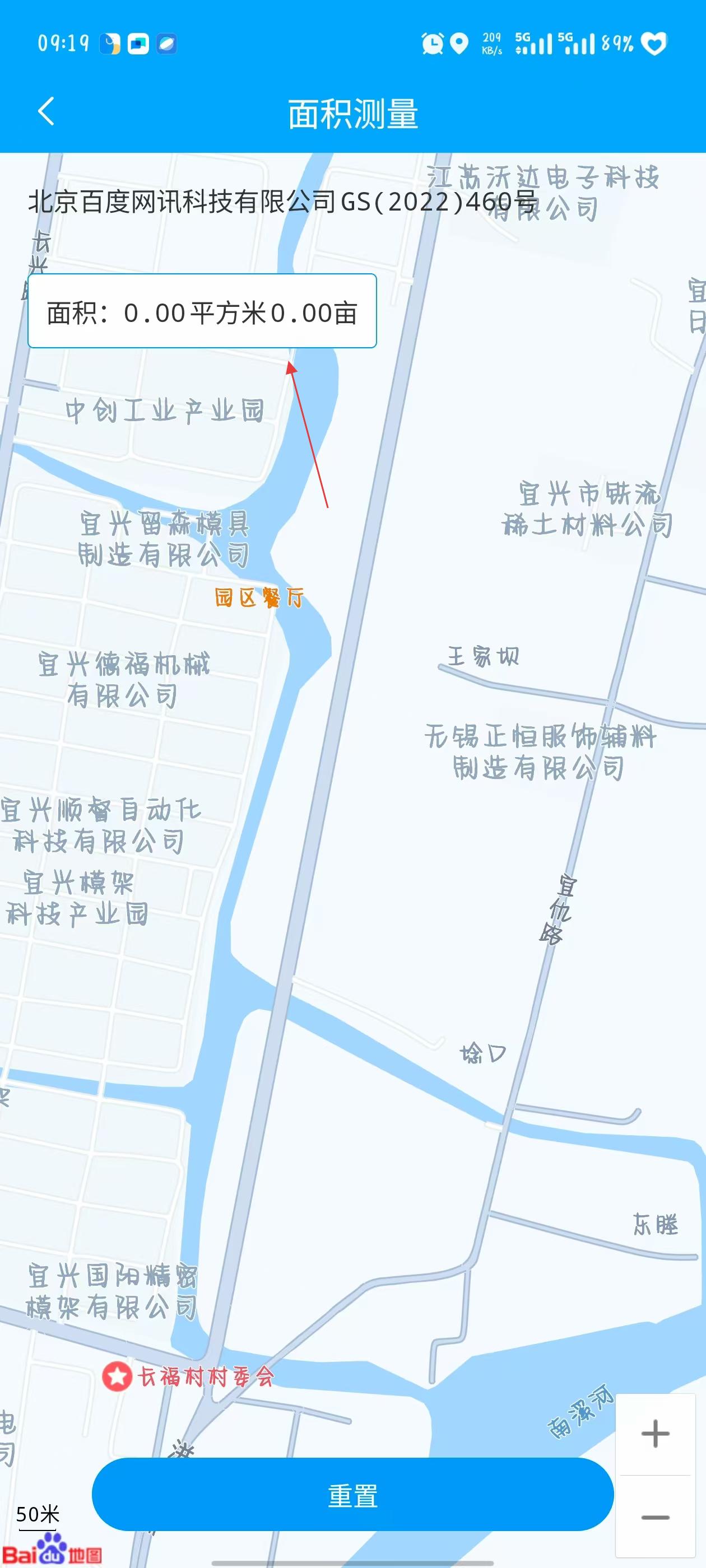 2、進(jìn)入面積測(cè)量的地圖操作頁面,此時(shí)地圖會(huì)加載出可測(cè)量的區(qū)域范圍。