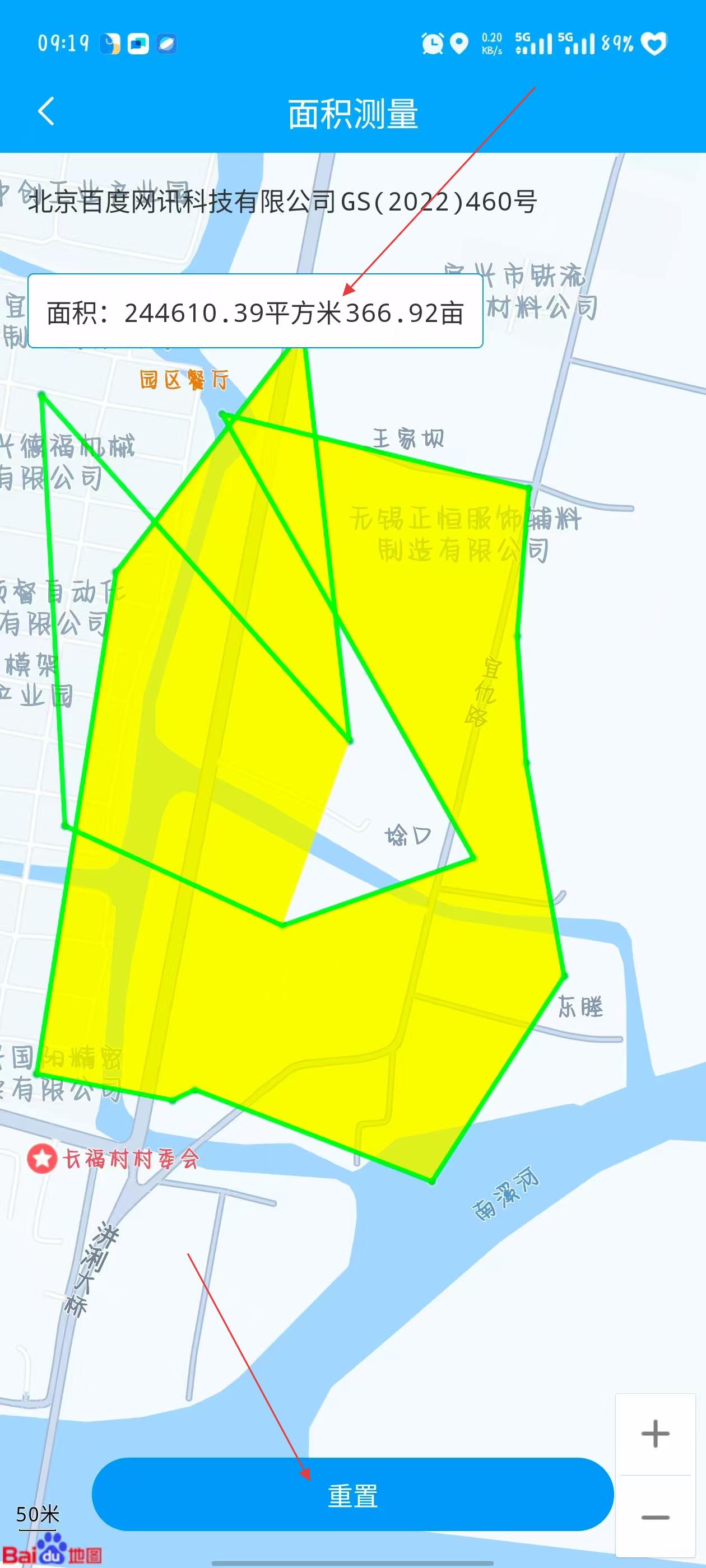 4、當(dāng)框選完目標(biāo)區(qū)域后,軟件會(huì)自動(dòng)計(jì)算并在頁面上方顯示該區(qū)域的面積數(shù)值,若需重新測(cè)量,可點(diǎn)擊頁面下方的重置按鈕,再次進(jìn)行區(qū)域框選操作。