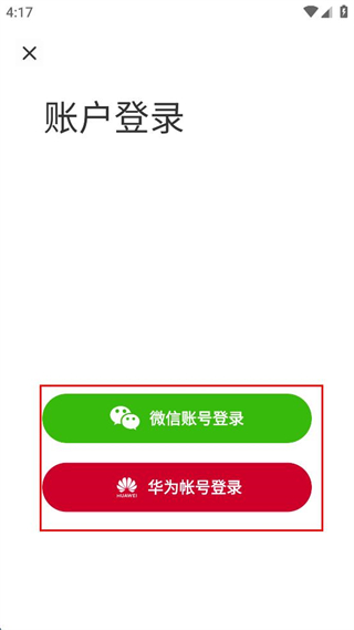 3、在賬戶登錄頁(yè)面選擇微信賬號(hào)登錄或華為帳號(hào)登錄,完成登錄操作。