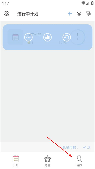 1、打開(kāi)計(jì)劃管理軟件,點(diǎn)擊右下角我的,進(jìn)入個(gè)人頁(yè)面。