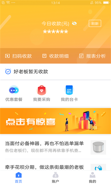 6、支持多種收款方式:刷卡收款、掃碼收款、大額收款一應(yīng)俱全。