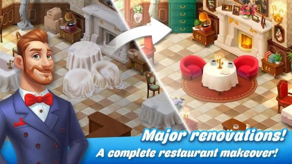 -練習(xí)烹飪技巧和管理技巧。清除色彩繽紛的匹配3級(jí),翻新和裝飾餐廳。