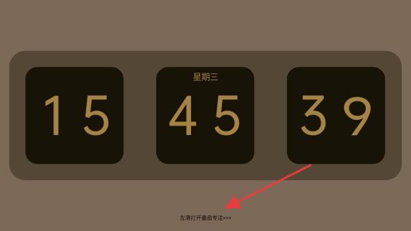 1、打開色采時(shí)鐘APP,在首頁(yè)內(nèi)點(diǎn)擊左滑打開番茄專注。