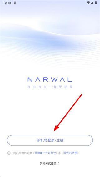 1、在云鯨智能app登錄頁(yè)面點(diǎn)擊手機(jī)號(hào)登錄注冊(cè)按鈕。