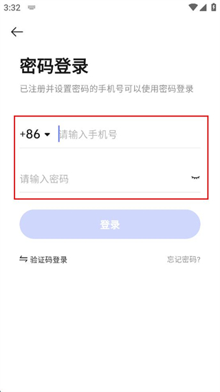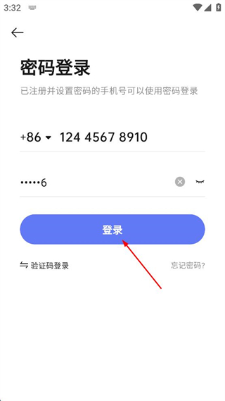 3、在密碼登錄界面輸入手機(jī)號(hào)和密碼。