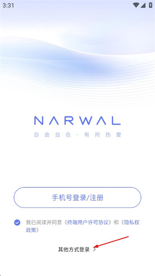 1、打開(kāi)云鯨智能,點(diǎn)擊“其他方式登錄”,進(jìn)入選擇登錄方式界面。