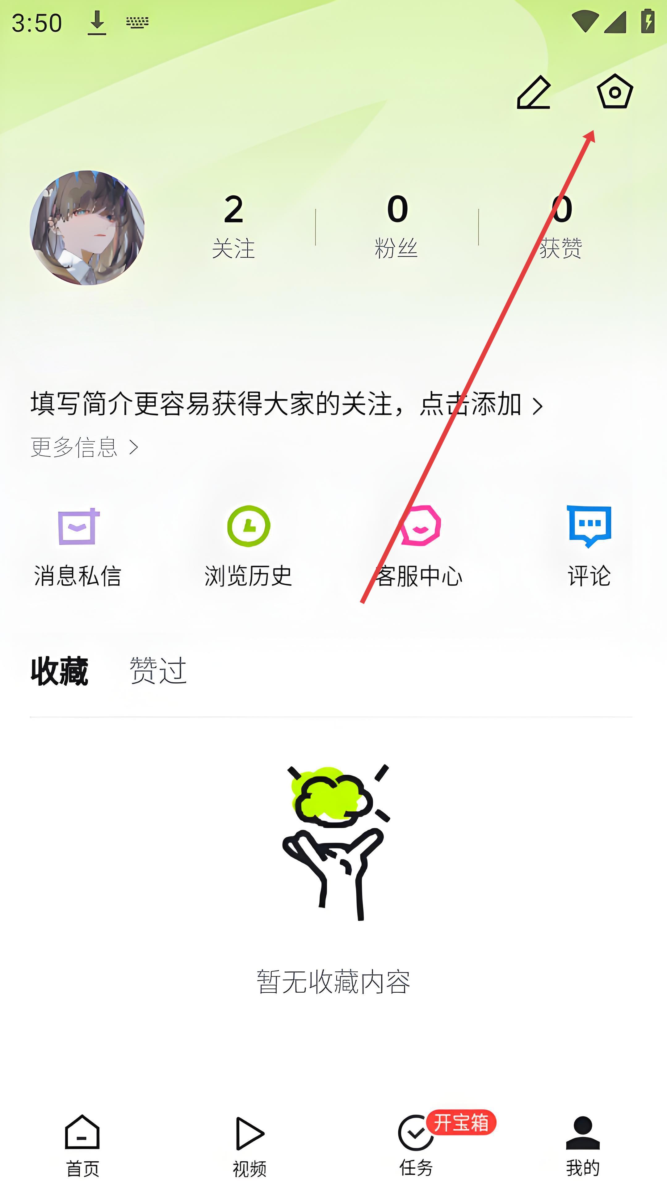 1、打開今日頭條APP,點(diǎn)擊底部導(dǎo)航欄的我的進(jìn)入個人主頁,再點(diǎn)擊頁面右上角的設(shè)置圖標(biāo),進(jìn)入設(shè)置的界面。