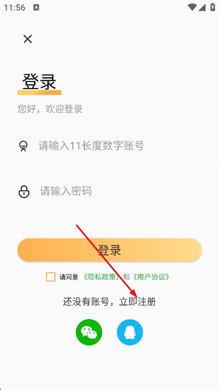 3、進(jìn)入登錄頁面后,點(diǎn)擊下方還沒有賬號,立即注冊選項。