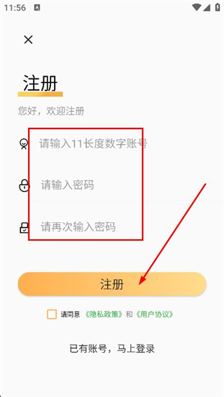 4、在注冊頁面中,輸入賬號和密碼,點(diǎn)擊注冊即可完成注冊。
