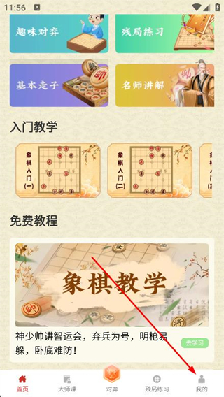 1、打開中國象棋大師app,點(diǎn)擊底部導(dǎo)航欄最右側(cè)我的選項。