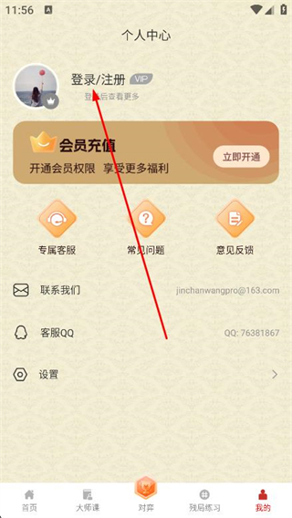 2、在個人中心頁面中,找到并點(diǎn)擊上方的登錄/注冊區(qū)域。