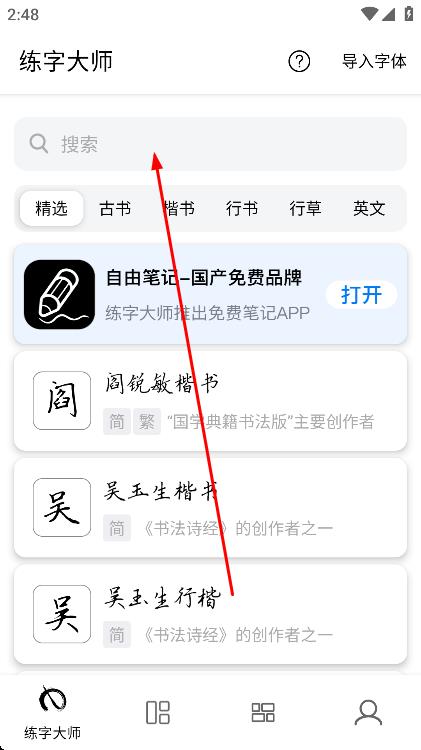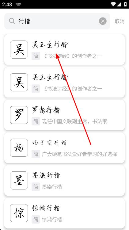 2、在搜索結(jié)果中,選擇需要臨摹的字體,點擊進入。