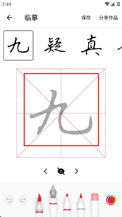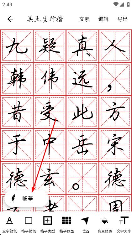 4、進入臨摹界面后,就可以按照屏幕上的字體進行臨摹。