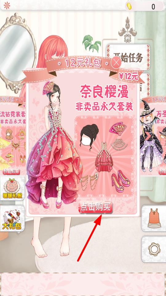 2、點(diǎn)擊大禮包后進(jìn)入相關(guān)界面后展示奈良櫻漫等永久套裝,在經(jīng)濟(jì)允許的情況下點(diǎn)擊購買按鈕進(jìn)行購買。