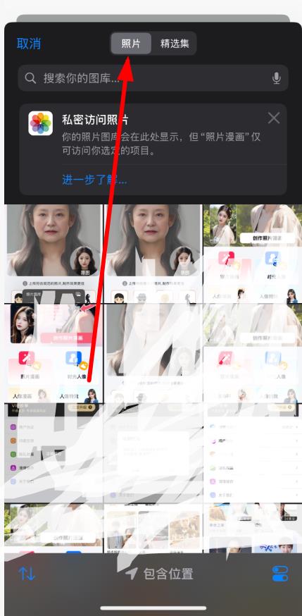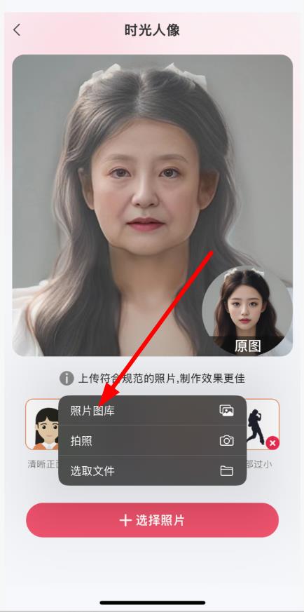 4、以從照片圖庫選擇為例,點擊照片圖庫后,在手機圖庫界面選擇想要處理的照片即可開始體驗時光人像功能。