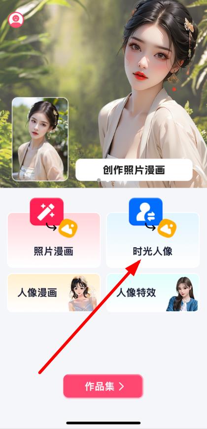 1、打開照片漫畫軟件,在軟件主界面中,點擊時光人像選項。