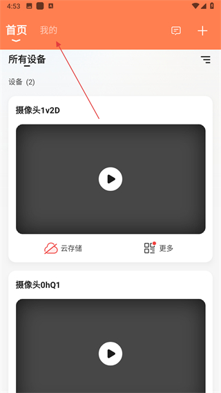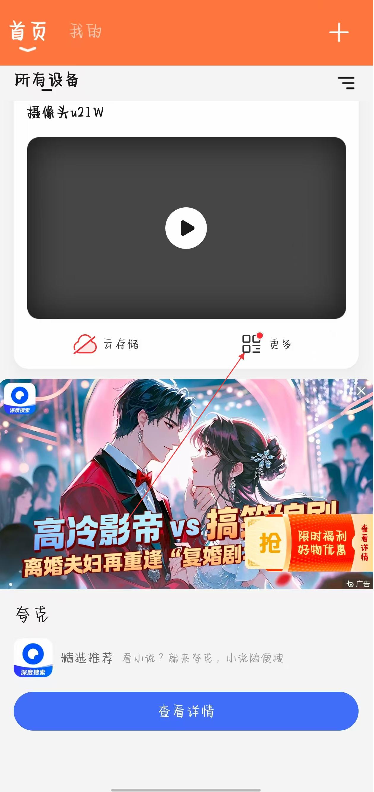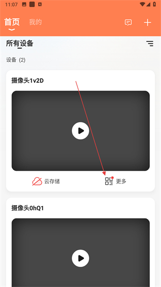 1、打開(kāi)喵眼精靈應(yīng)用,在首頁(yè)的所有設(shè)備板塊中,找到需分享的設(shè)備,點(diǎn)擊卡片右下角的更多按鈕。