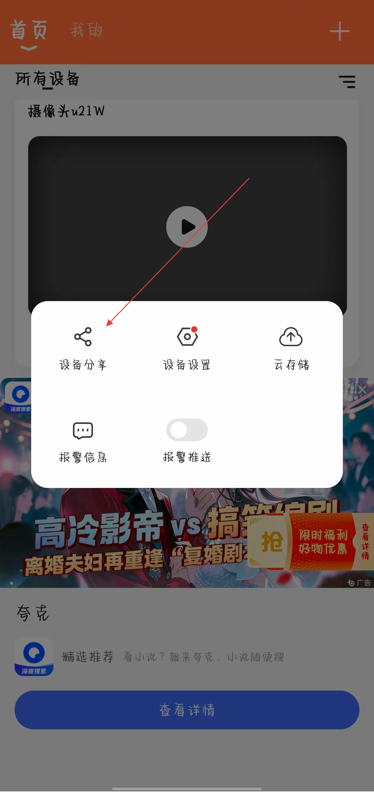 2、在操作菜單中,點(diǎn)擊設(shè)備分享選項(xiàng),進(jìn)入設(shè)備分享設(shè)置頁(yè)面。