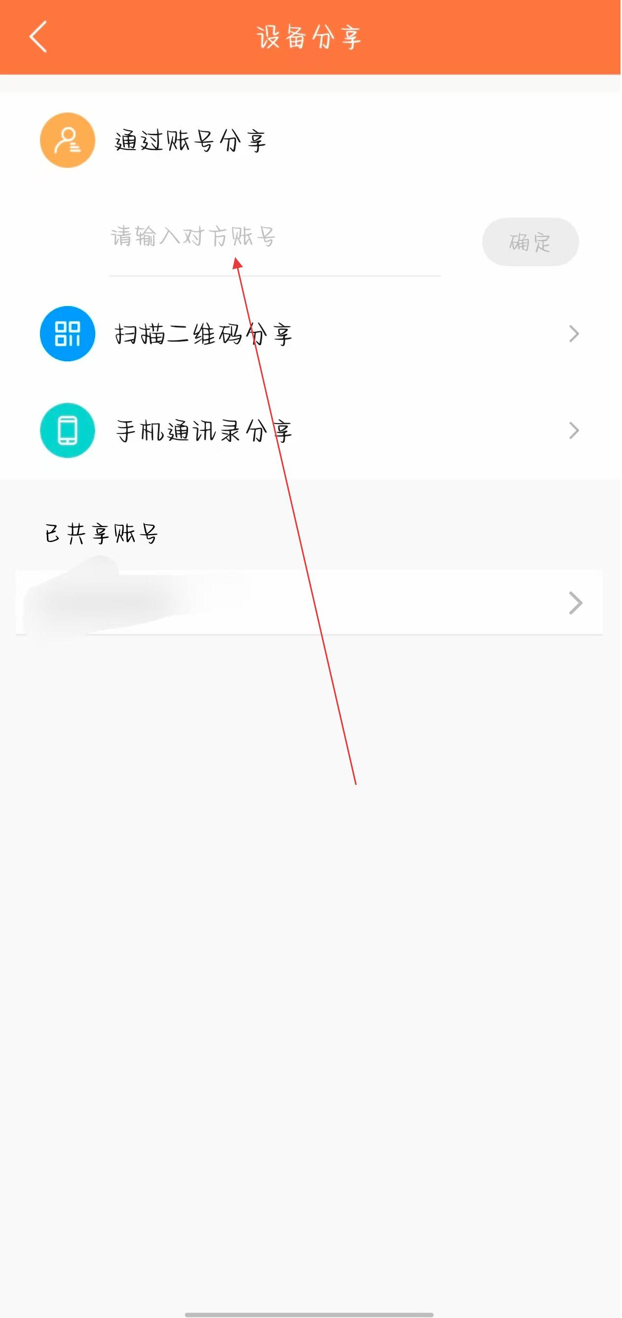 3、頁(yè)面提供三種分享方式,若選擇通過(guò)賬號(hào)分享,在請(qǐng)輸入對(duì)方賬號(hào)輸入框中填寫(xiě)接收方的喵眼精靈賬號(hào),點(diǎn)擊確定完成分享。