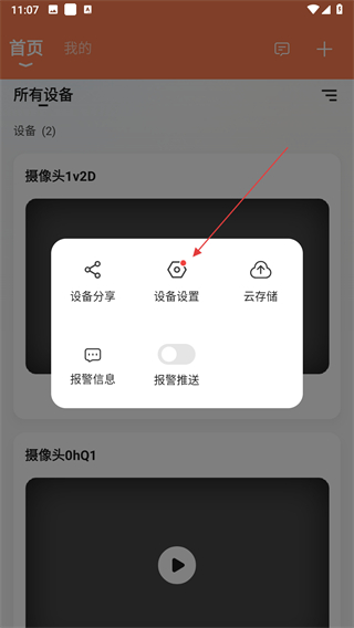 2、在彈出的菜單中,點(diǎn)擊設(shè)備設(shè)置選項(xiàng)。