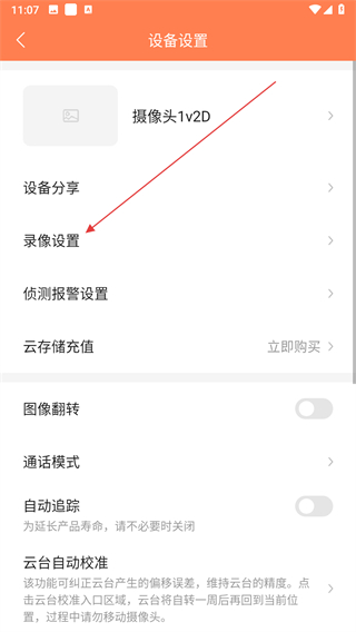 3、在設(shè)備設(shè)置頁(yè)面,點(diǎn)擊錄像設(shè)置選項(xiàng)。