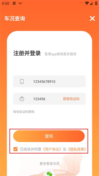 3、勾選已閱讀并同意用戶協(xié)議及隱私政策。