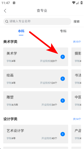 2、在專業(yè)查詢列表中找到目標(biāo)專業(yè),點(diǎn)擊進(jìn)入該專業(yè)詳情頁面。