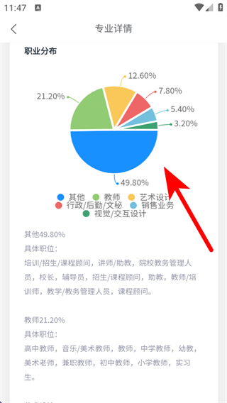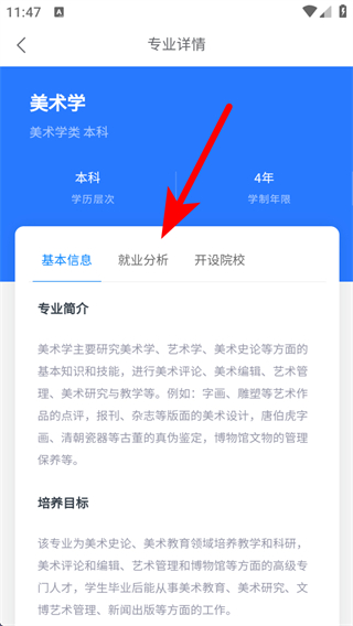 3、在專業(yè)詳情頁中點(diǎn)擊就業(yè)分析選項(xiàng),解鎖專業(yè)就業(yè)相關(guān)詳細(xì)數(shù)據(jù)。