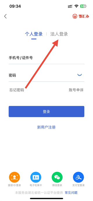 2、在登錄界面點(diǎn)擊法人登錄選項(xiàng),切換到法人登錄頁面。