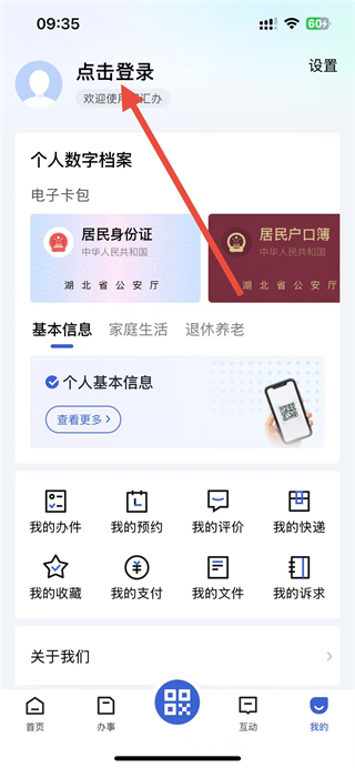 1、打開鄂匯辦app,在我的頁面點(diǎn)擊登錄區(qū)域,進(jìn)入登錄界面。