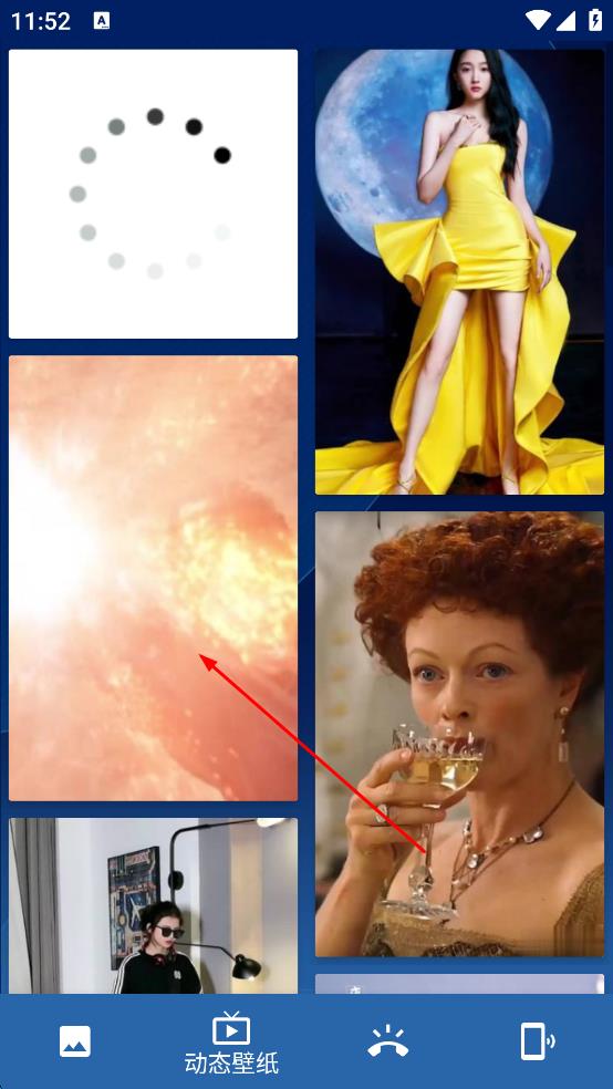 1、打開動(dòng)態(tài)壁紙應(yīng)用,瀏覽壁紙列表,點(diǎn)擊選中想要設(shè)置的壁紙,進(jìn)入壁紙?jiān)斍轫?yè)面。