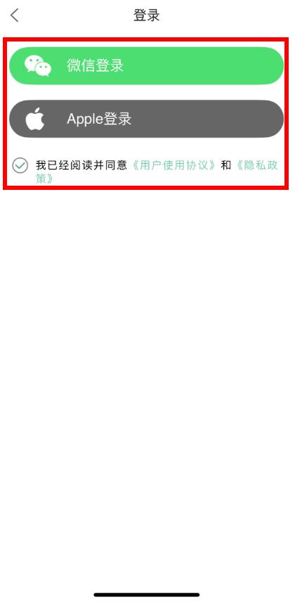 4、在登錄頁(yè)面選擇登錄方式,可通過微信或Apple登錄,點(diǎn)擊對(duì)應(yīng)登錄按鈕,按提示完成操作,即可完成注冊(cè)登錄。